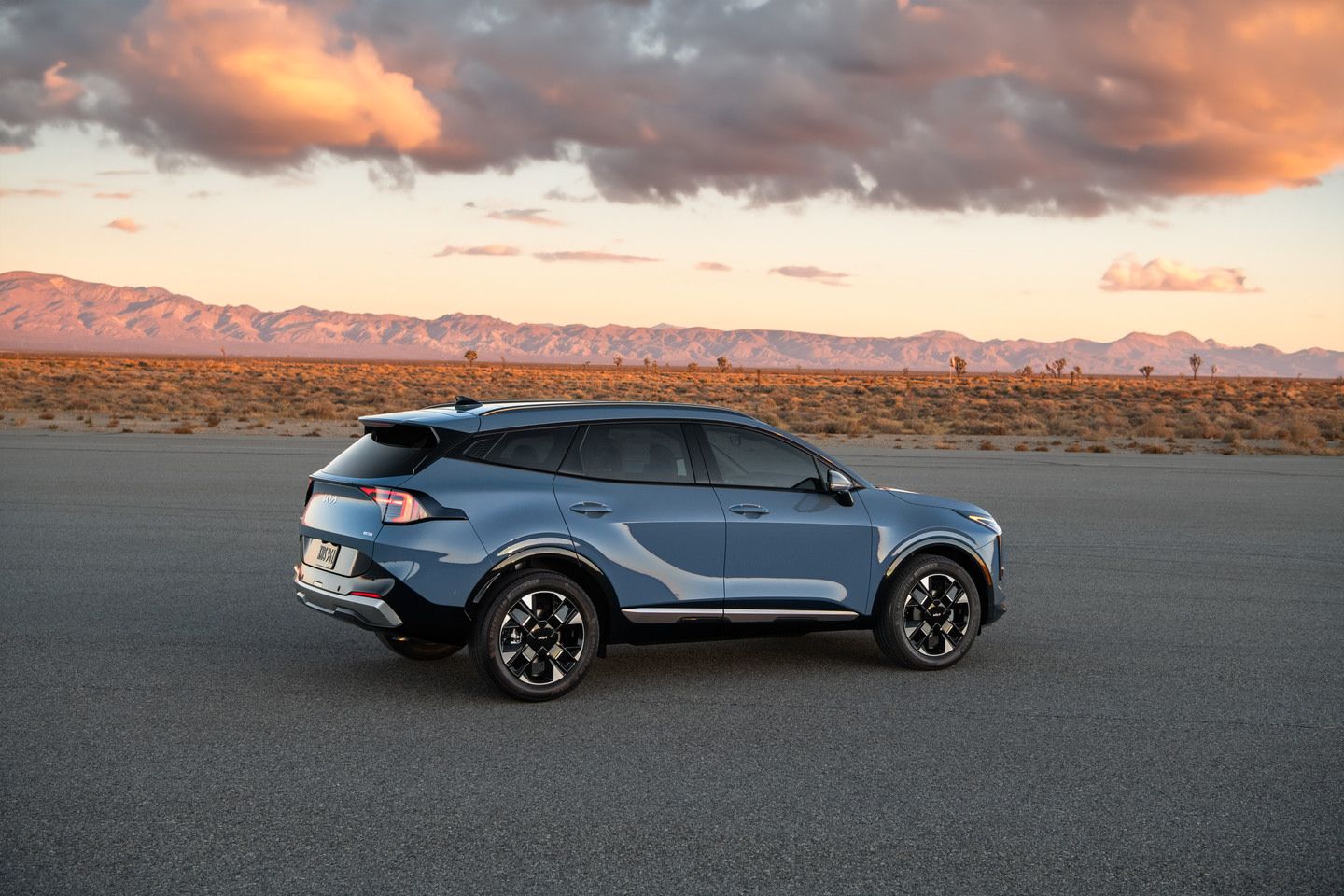The Sportage Hybrid uses a 1.6L turbocharged four-cylinder engine paired with a permanent magnet synchronous electric motor. The system produces 232 horsepower and 271 lb-ft of torque, routed through a six-speed automatic transmission to all four wheels. The 270-volt lithium-ion polymer battery charges during braking and coasting, allowing the electric motor to assist the gasoline engine during acceleration and highway cruising.